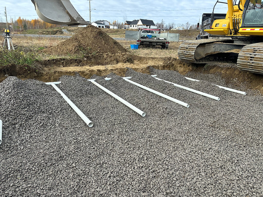- Excavation du terrain en fonction des spécifications du système choisi.