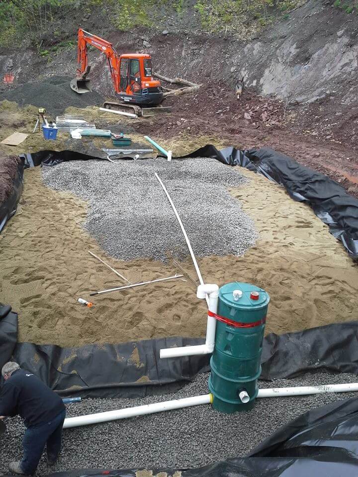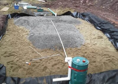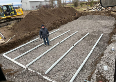 - Mise en place des tranchées, du champ d’épuration et des conduites nécessaires.